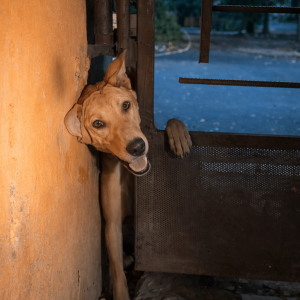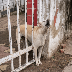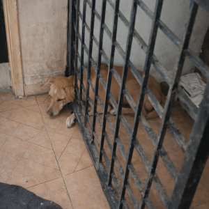 At first, he didn’t look like a dog anyone would want to approach. A stray.Pinned in place.Exploding with loud barks behind a white metal gate. It felt…