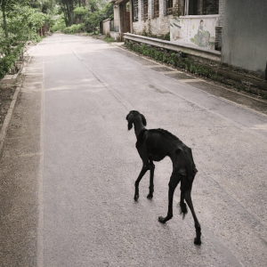 He didn’t bark.He didn’t move much at all. He simply stood there. A tall black hunting dog — possibly an Afghan Hound mix — lingered in the…