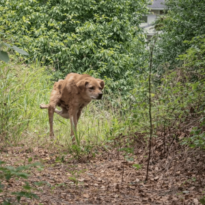 At first, the scene feels almost silent — but painfully heavy. A frail stray dog drags his body through dense bushes, relying only on his front legs….
