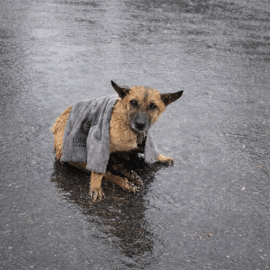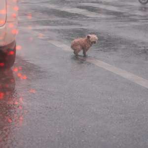A Fragile Shape on a Flooded Road The rain came down in sheets. On a glistening highway, a small dog fought to move forward using only his…