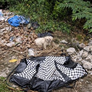 A Small Shape Hidden in the Waste At first, she didn’t even look real. Just a tiny white figure weaving through piles of garbage, nose low to…