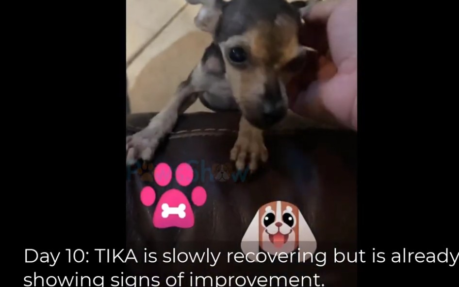 Against every expectation, the “rotting puppy” held on. Not quietly, either — she fought in a way none of us were prepared for. By Day 7, she started showing the first signs of turning a corner. That’s when we gave her a new name: Tika, a clean break from the life she had been forced to live.