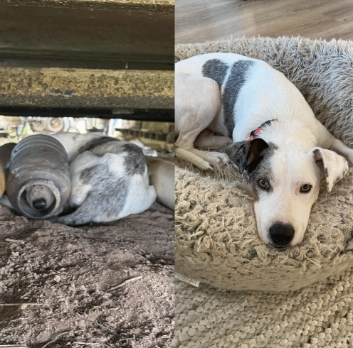 The frightened dog who once hid under buildings had become a lively and friendly companion.