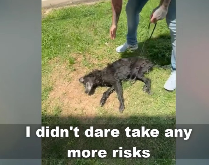 The rescuer began trying to loosen the tangled ropes around the dog’s body. But when he gently attempted to turn him over, the dog suddenly let out a sharp cry of pain.