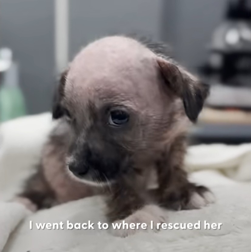 She was severely underweight, her tiny body tipping the scale at only 890 grams. Parasites had filled her swollen belly, and mange had left painful patches across her fragile skin. The cold had nearly shut her body down.