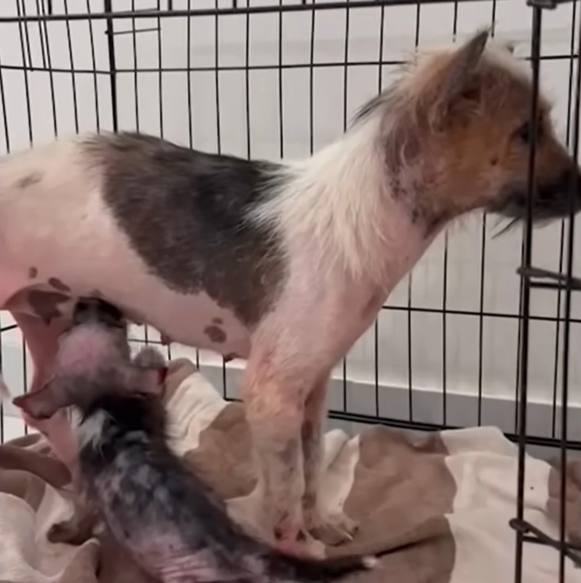 Pamela’s tired tail started wagging slowly, and Zena—still weak and fragile—lifted her tiny head toward her mother.