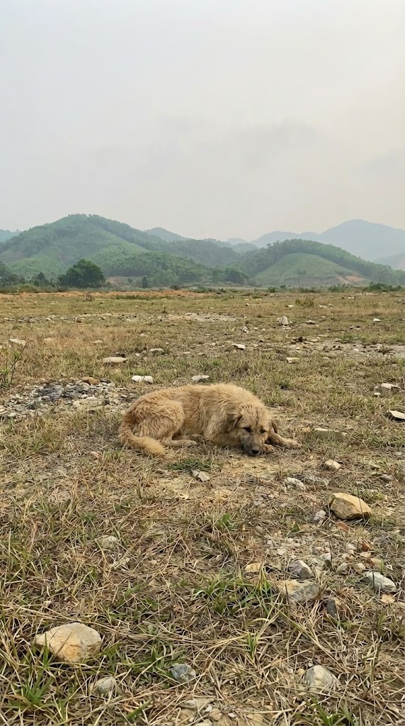 When she arrived, the stillness of the countryside felt unbearable. Curled near the roadside was a dog so thin he looked like a shadow. His chest rose and fell faintly, each breath a quiet struggle.
