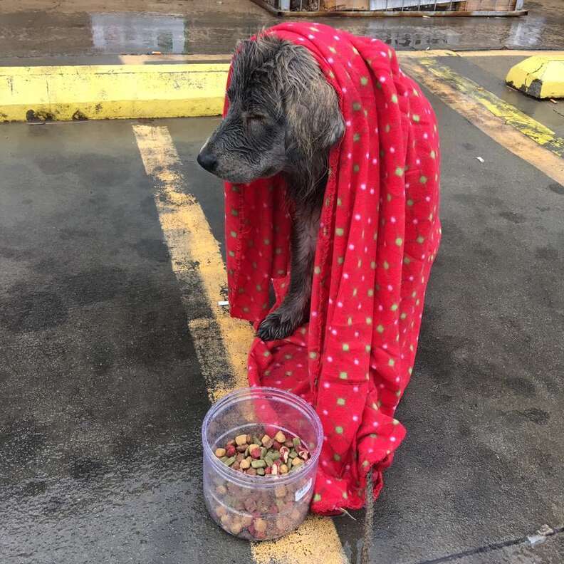 For over an hour, she stood there in the cold rain, talking softly, offering calm words and steady presence. Up close, she could see how much Cassie had suffered: tangled fur, a wound on her leg, cloudy eyes from untreated infection.