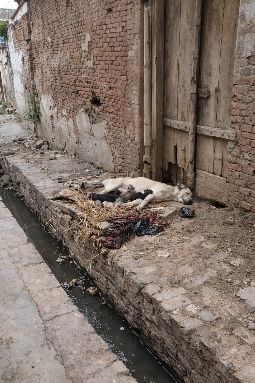 Her newborn puppies were lying on a narrow concrete ledge, inches away from a deep drainage canal. One wrong movement, one tiny slip, and the outcome would be unthinkable.