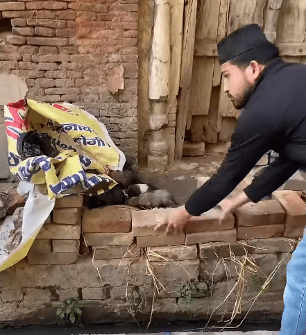 Using loose bricks found nearby, they quickly built a small barrier along the edge of the ledge. It wasn’t beautiful, but it created a boundary between life and disaster.