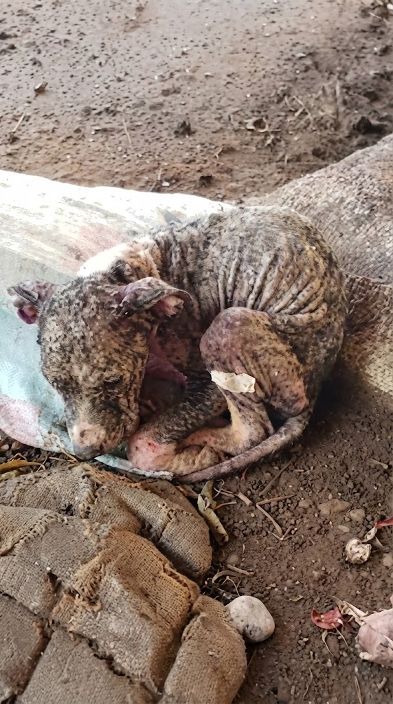 At the clinic, veterinarians quickly realized how serious PETRA’s condition was. She was dangerously underweight and suffering from severe mange. Large patches of her skin were inflamed and sore, nearly hairless from infection. Despite the pain and exhaustion, there was something in her eyes—a quiet strength that refused to give up.