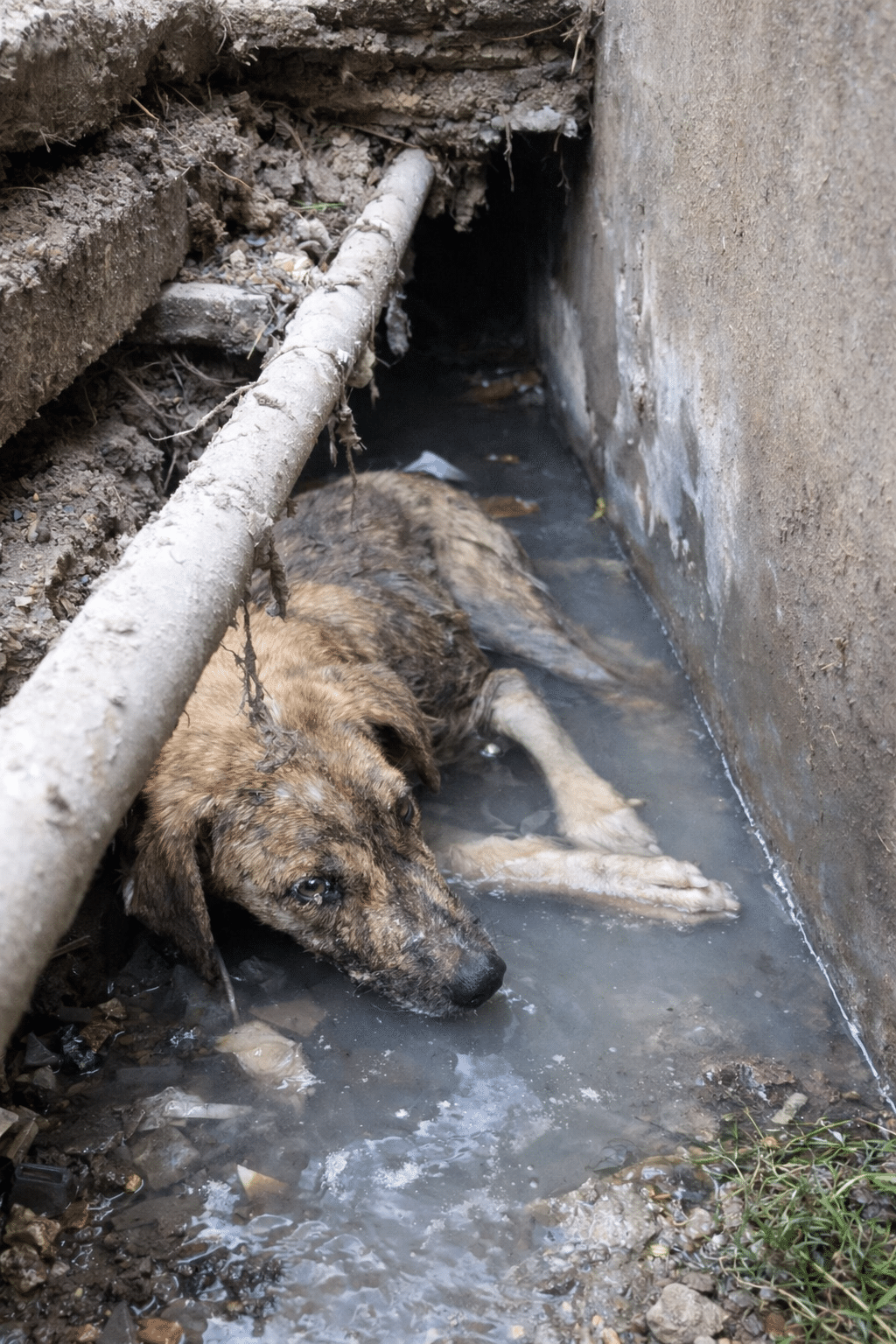 Hidden beneath thick slabs of stone that sealed a deep wastewater channel, a tiny body clung to life beside a stream of dirty water. When rescuers finally pried the slabs open, they found him—fragile, unmoving, his head dipping again and again into the dark flow below.