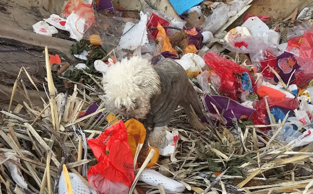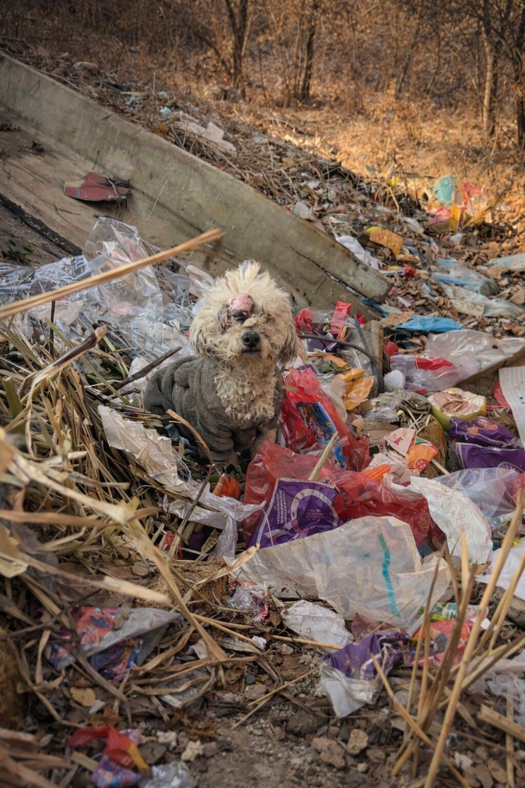 Tiểu Gia Bảo was discovered the way too many abandoned dogs are — scavenging through piles of trash just to survive.
