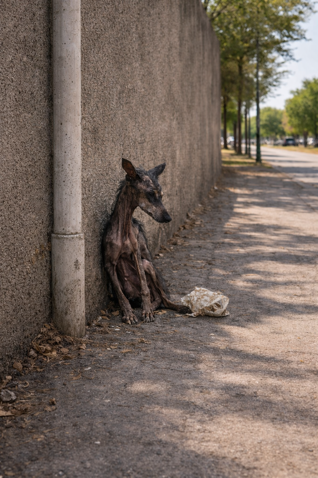 His body was skeletal, ribs sharply outlined beneath paper-thin skin. Illness and starvation had stolen most of his fur. He couldn’t lift his head without shaking.