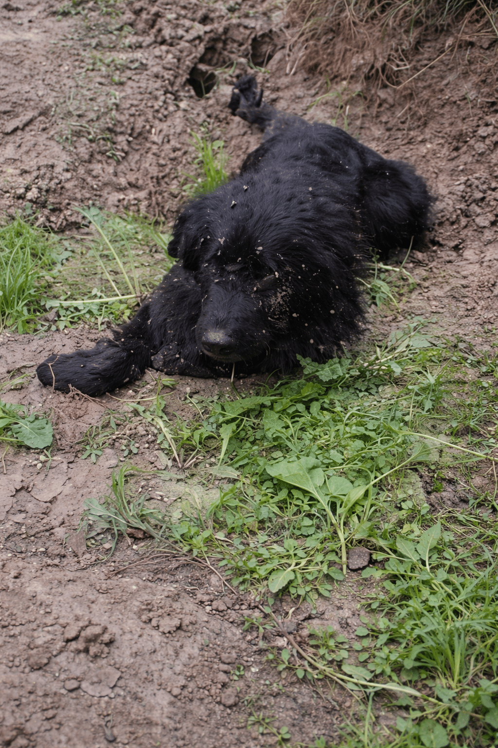 Hidden in a patch of overgrown bushes, Dark blended into the dirt — a small black shape that barely looked alive.