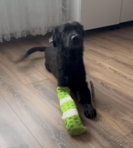 The once-fractured puppy had grown into a sleek, healthy black dog who stretched across the sofa, chased toys without hesitation, and curled up beside his family at night.