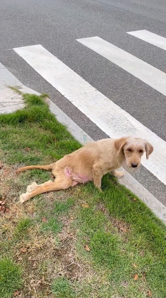 At a crowded intersection, a couple noticed a dog that looked… wrong. Not just thin. Not just tired. Wrong in a way that makes you slow down without even thinking.