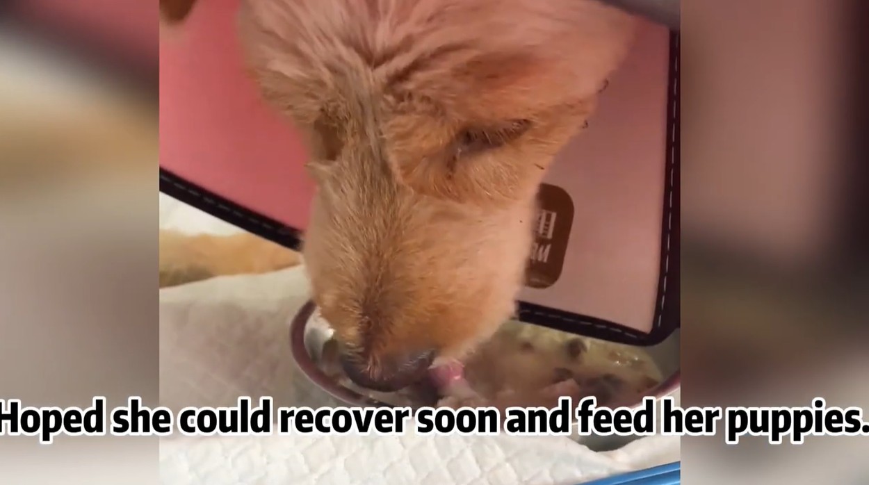 Even after surgery, even with pain stitched into her body, the mother dog’s instincts didn’t break.