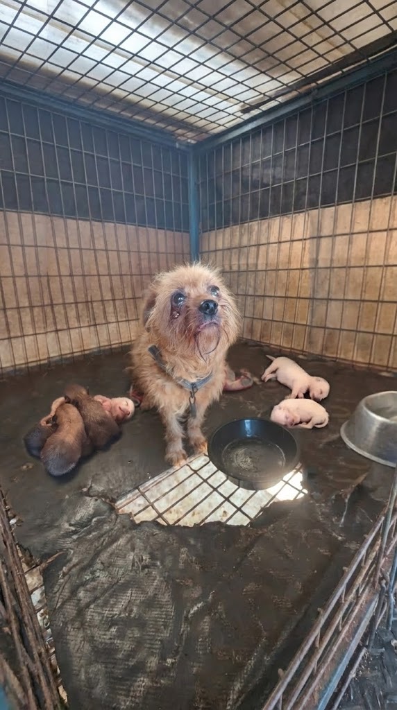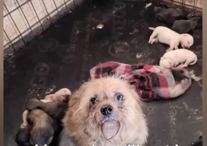 Curled tightly around her newborn puppies, Mimi became their only protection. Her body, thin and exhausted, formed a barrier against the cold ground. Every tremor she felt was absorbed so they wouldn’t have to feel it. Every shallow breath she took was a promise she made to them.