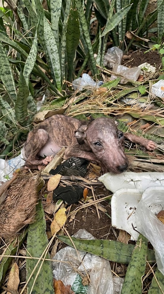 Gorgojita entered this world in silence and sorrow. There was no gentle heartbeat beside her, no warm body to curl into, no mother’s touch to guide her first moments of life. She was found on the side of a busy road, hidden among trash and debris, pressed against the lifeless body of the one who had just brought her into the world.