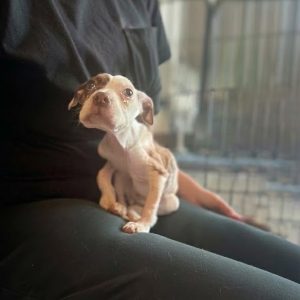 Tink entered the world without the softness most puppies are granted. At just eight weeks old, she was discovered alone in a backyard—silent, skeletal, and frighteningly small….