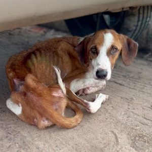 Some dogs scream for help. She didn’t. In the middle of a noisy afternoon, surrounded by moving cars and rushing footsteps, she curled herself beneath a parked…