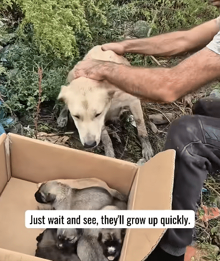 Surprisingly, the mother dog remains calm during the process. It’s almost as if she senses that the person standing before her is there to help.