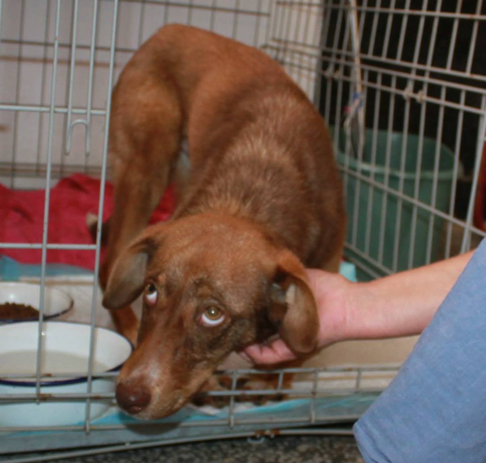 A young dog, barely ten months old, had been chained beneath a trailer and left lying in the dirt for nearly ten days.