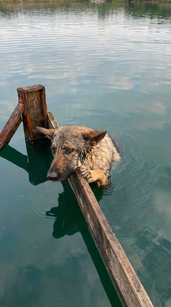 Early joggers stopped in their tracks when they noticed a shape clinging to the steep, muddy edge of the lake. As they moved closer, their hearts sank. It was a German Shepherd, soaked to the bone, trembling uncontrollably, barely able to hold herself upright.