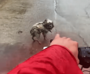 Only after the food was gone did the rescuer move closer. His hand reached out carefully, without force.