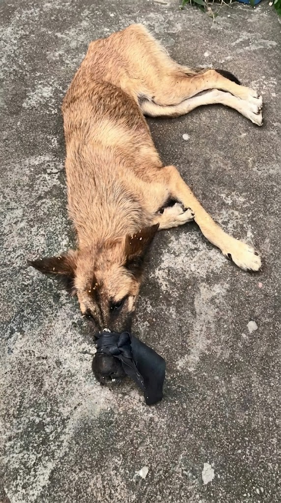 When officers from the Military Police arrived, they opened the bag slowly, carefully. Inside was a dog worn down by fear and exhaustion—thin, weak, her body crawling with ticks. The tape around her mouth had left raw, painful marks, making breathing, eating, even drinking a struggle.