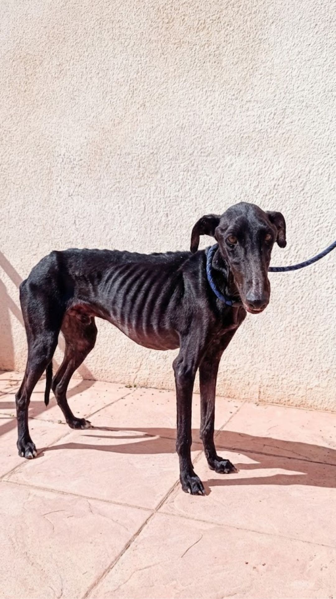 When Coco was placed on the examination table, she barely resembled a dog. Her body looked like a fragile structure made of bones and angles. A healthy female Greyhound should weigh around 75 pounds.