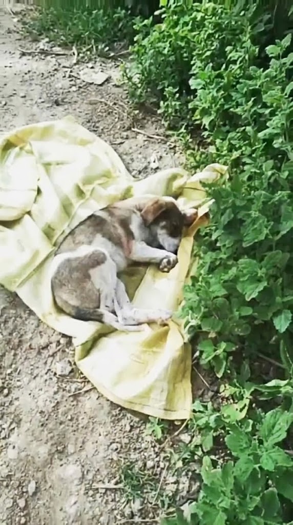 There, in the quiet dust and fading light, lay a tiny puppy — injured, confused, and far too young to understand why he had been left behind. His body barely moved. His eyes were filled with fear. Every breath felt like a struggle.