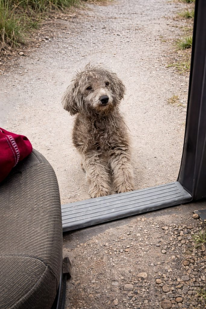 The man knew her condition was urgent, so he drove her straight to a grooming shop.