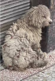 The grooming team worked slowly and carefully, shaving away the thick knots of fur bit by bit. Underneath, her skin was inflamed, irritated, and raw.
