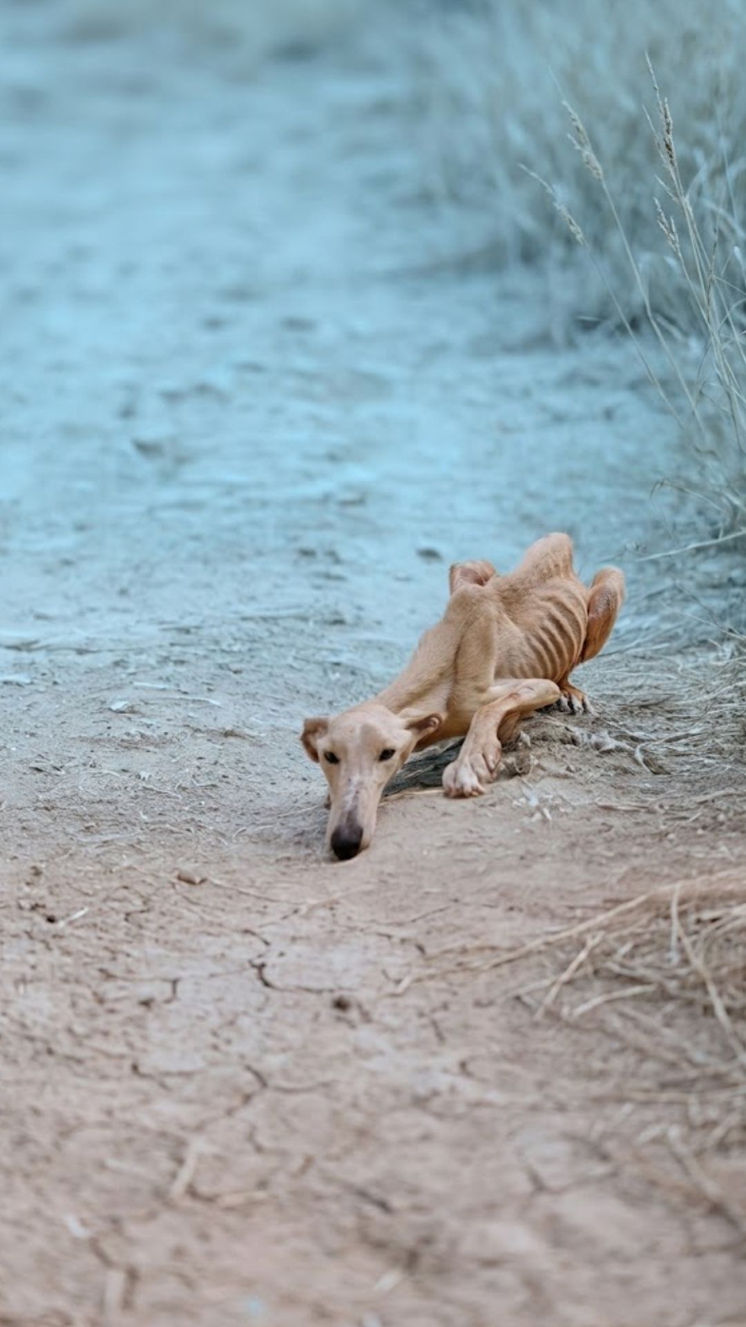 The animal standing outside barely resembled a dog anymore. His ribs pushed sharply against his skin, his body reduced to nothing more than bone and exhaustion.