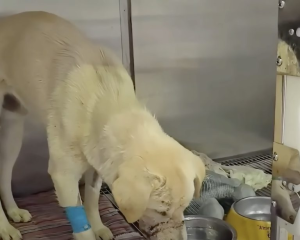 At the veterinary clinic, treatment began immediately. Once the wire was removed, the extent of the injuries became clear—wounds hidden beneath weeks or months of neglect. The dog was cleaned, medicated, and finally allowed to rest without pain pressing in from every direction.