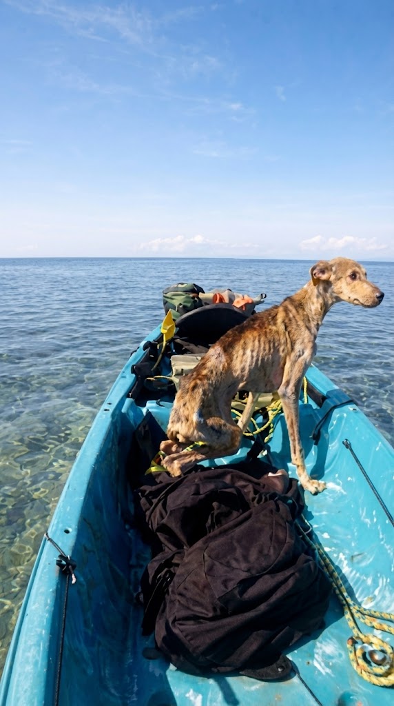 Without delay, Winston was gently lifted onto the kayak. The return trip required paddling over a mile across open water—an uncertain and exhausting journey. Yet Winston didn’t resist. He stayed still, as if he sensed this was his only chance. In that quiet crossing, fear gave way to trust, even though his body had almost nothing left to give.