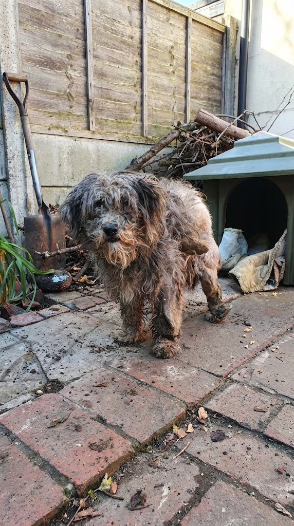 She had been abandoned in her senior years—right when she should have been wrapped in comfort, not thrown away. Her coat wasn’t simply messy. It was a thick, painful shell of tangled mats, dirt, and neglect. The kind of sight that makes you stop breathing for a second because your brain refuses to accept that this is a living animal.