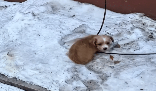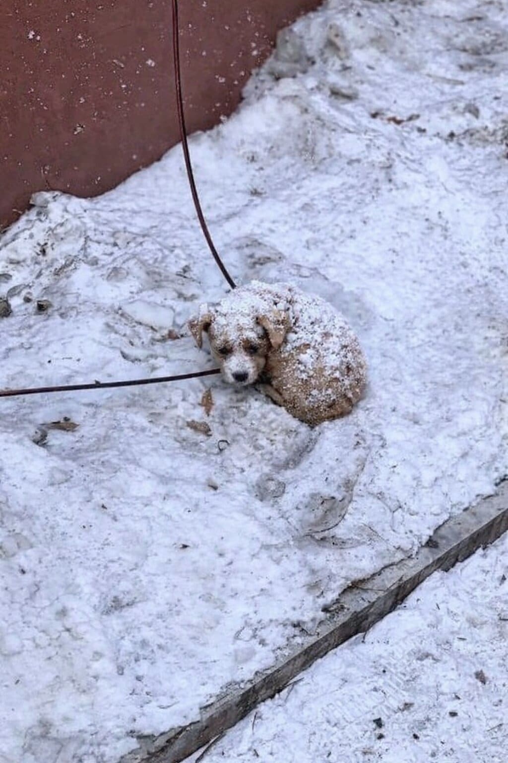 The puppy was found alone, curled into a tight ball against the frozen ground.