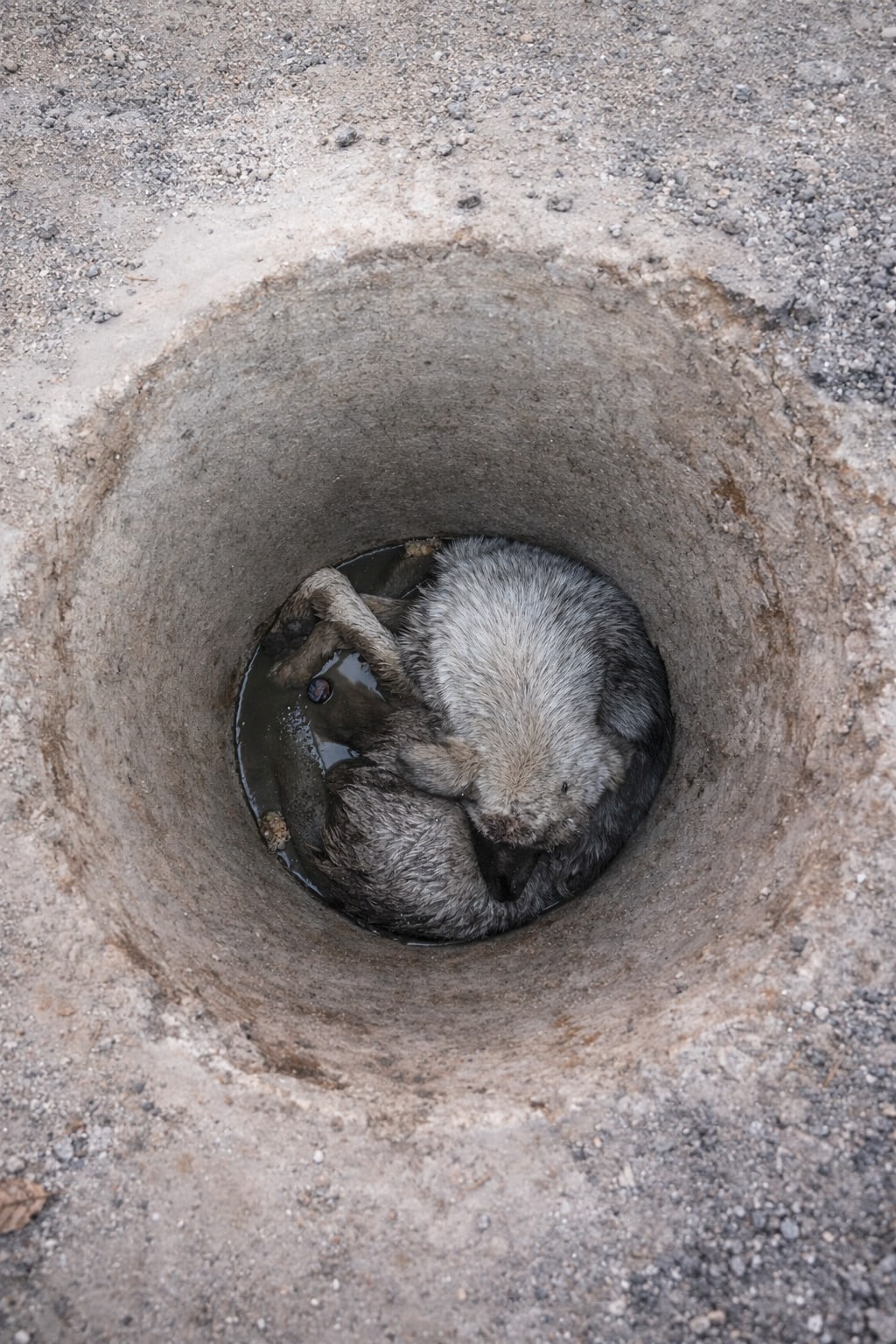 Days earlier, Ollie had been struck by a car. In shock and pain, he tried to drag himself away from the road. Somehow, in the confusion, he slipped into the drainage hole. At some point, the opening was covered again—cutting off light, cutting off sound.