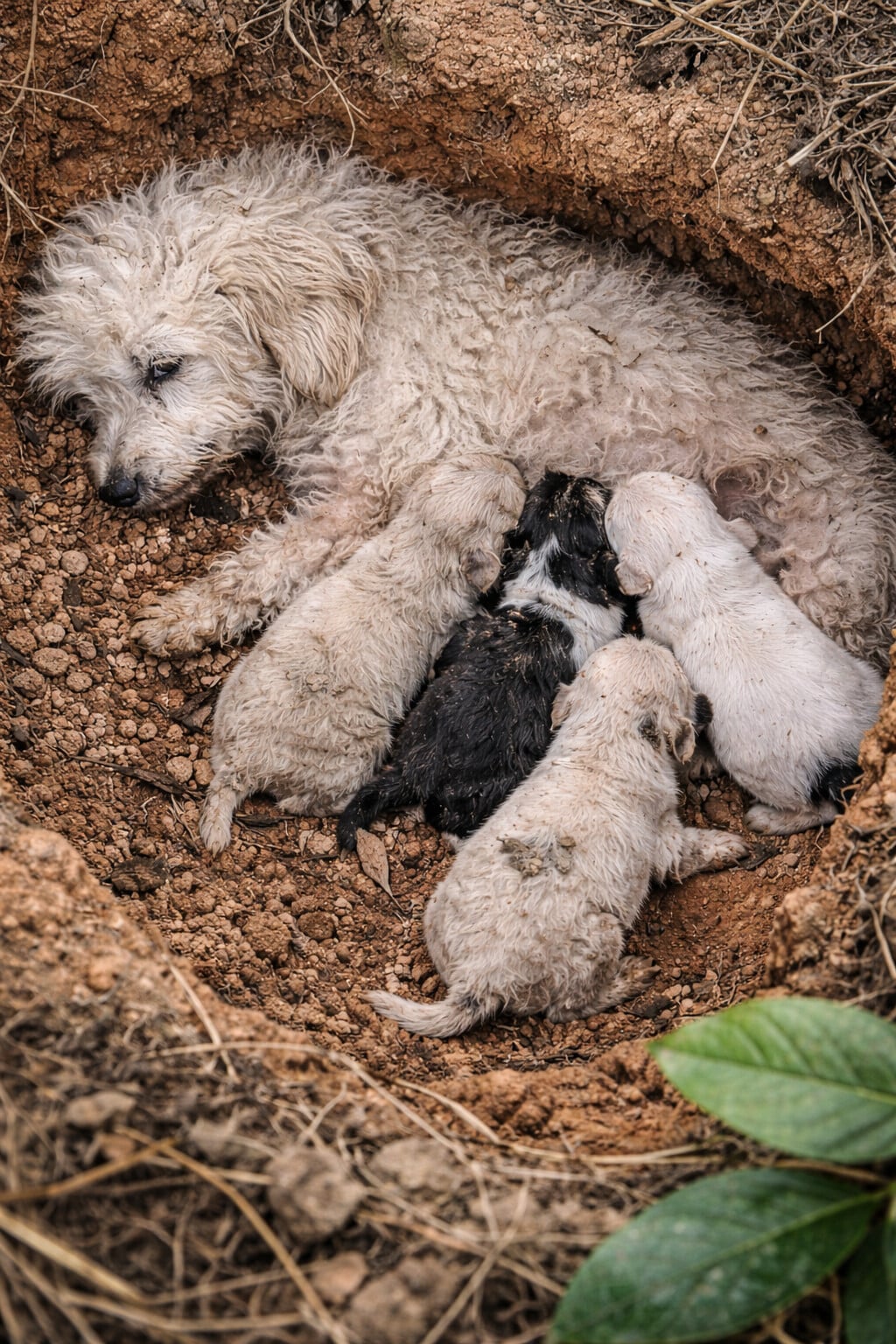 Tiny bodies pressed against damp ground, exposed to the cold and moisture. There was no blanket, no shelter—only their mother’s body curled protectively around them.