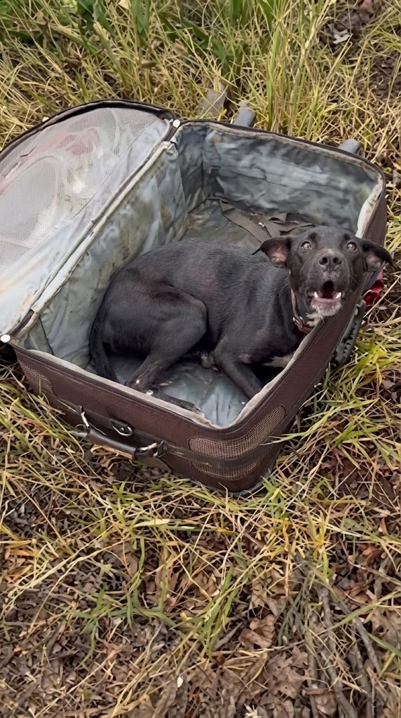 The small black dog was blind, unable to stand, unable to walk. Someone zipped him inside a suitcase, carried him into an empty field, and left him there as if his life had already ended. The rain fell steadily, soaking the ground beneath the abandoned luggage. Inside, Julius lay trapped in complete darkness, weak and helpless, with no way out. In that moment, it felt as though the world had quietly turned away from him.