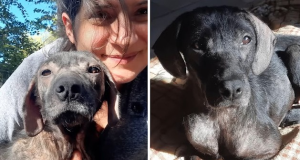Gradually, the change became visible. The fear in her eyes softened. Her coat began to grow back, healthy and shiny, and her skin healed from months of neglect. One small moment stood out above the rest—the first time her tail moved. It was hesitant, almost unsure, but it was real. That gentle wag was a sign that trust was taking root.