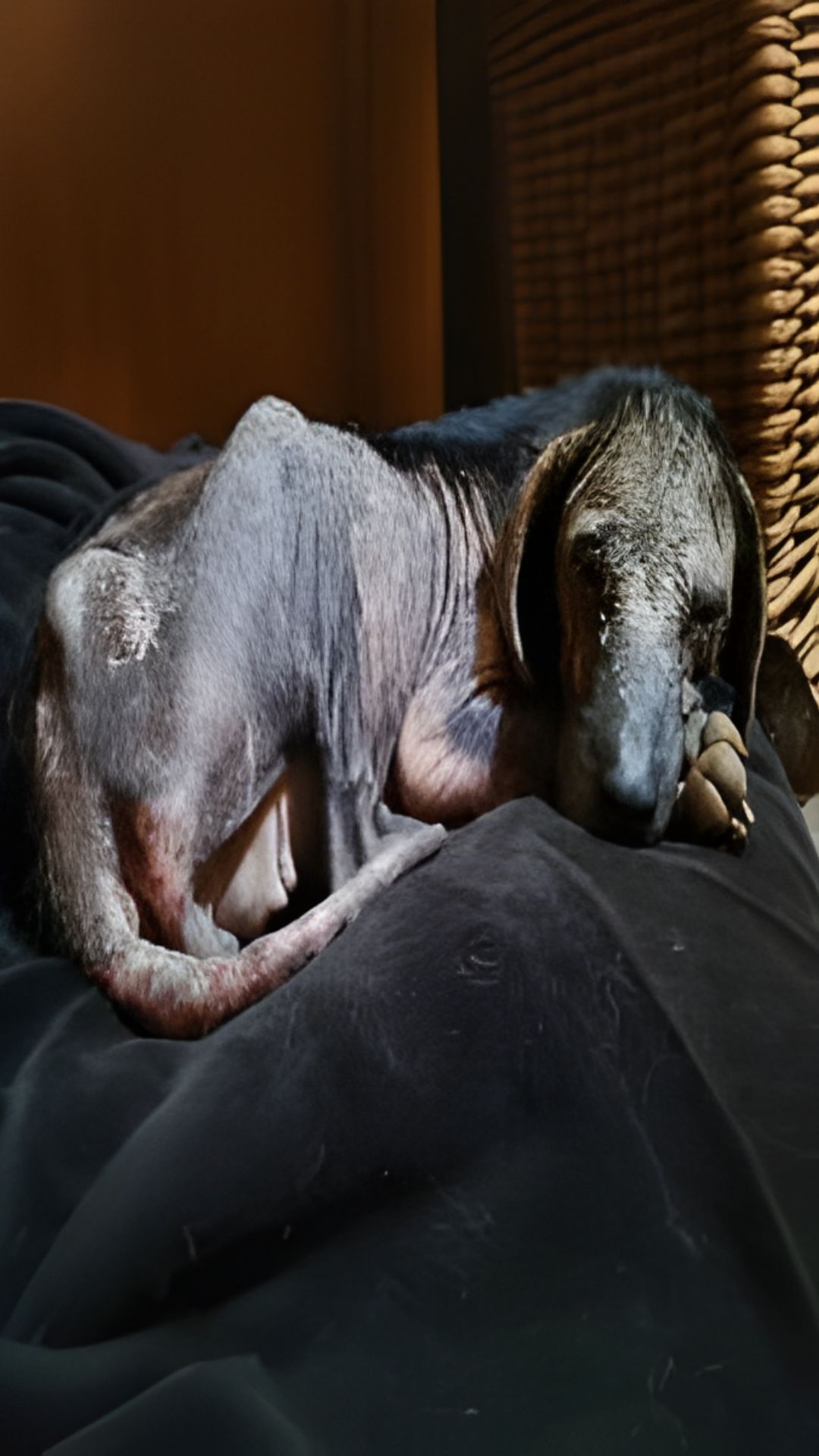 Before she was called Luna, she was known on the streets as LuLi—a stray mother dog surviving one day at a time. Her frame was thin, her ribs clearly visible beneath irritated, damaged skin. Large patches of fur were missing, and every step she took was careful, deliberate. She had learned the hard way that the world could turn hostile without warning.