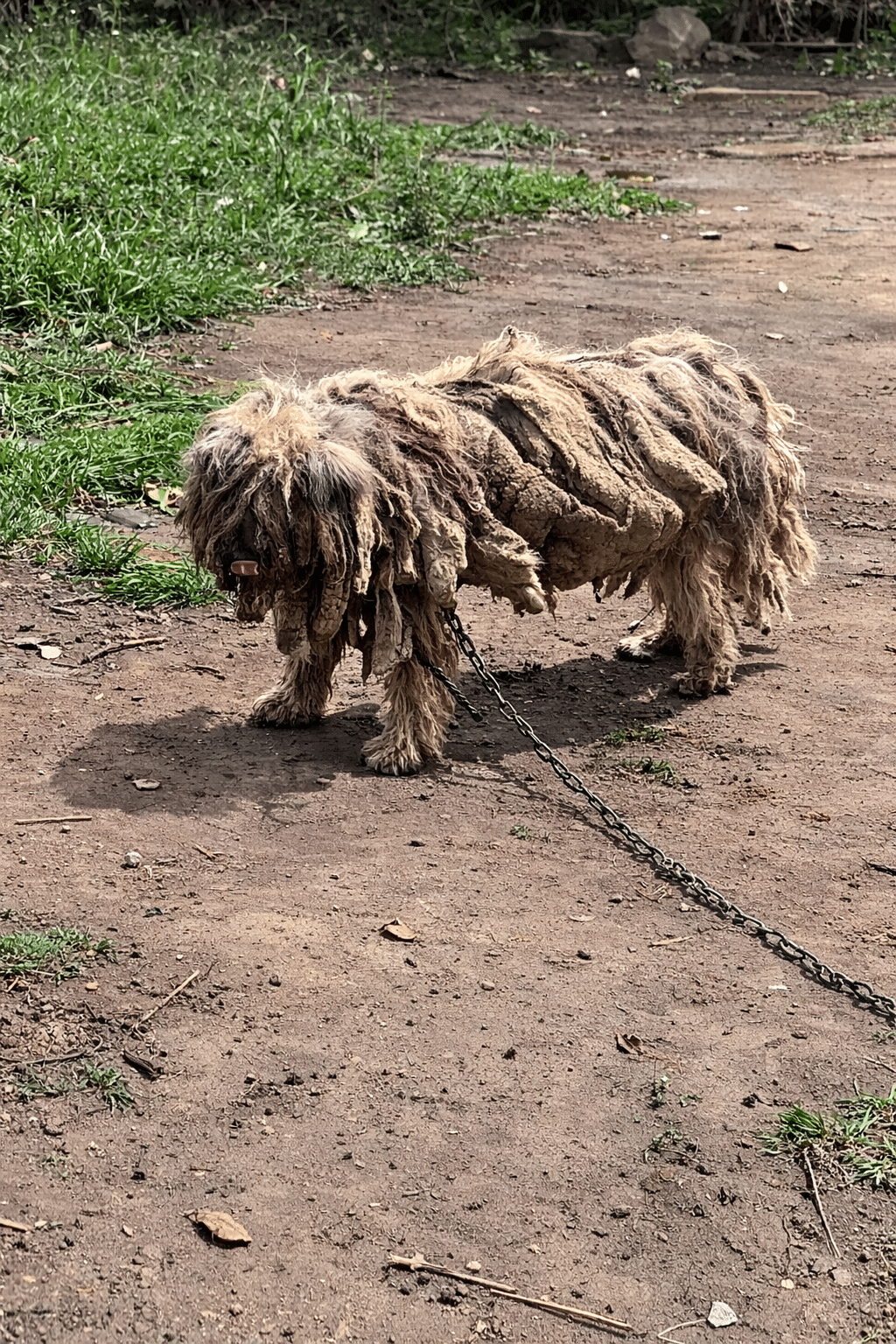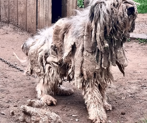 Thick, tangled, and matted into heavy clumps, it covered him entirely—layer upon layer of dirt and neglect fused together over time. It was so severe that his real shape was almost impossible to recognize.