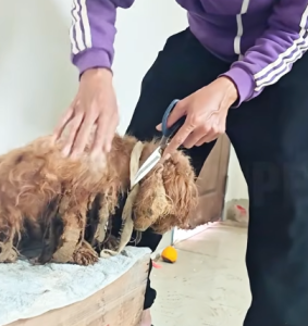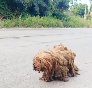 On a gray, rain-soaked afternoon, she was barely more than a shadow curled against a damaged wooden fence. She was small, painfully thin, and shaking from the cold. Her fur was tangled and damp, and every breath looked like it cost her effort. You could see her ribs clearly, a heartbreaking sign that she had been fighting for survival for far too long.