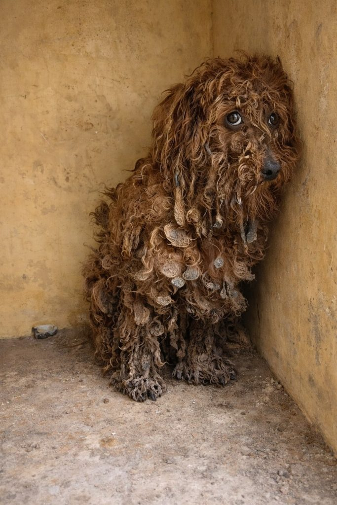 Sarah knelt down and spoke gently, not even sure the dog would let her near.