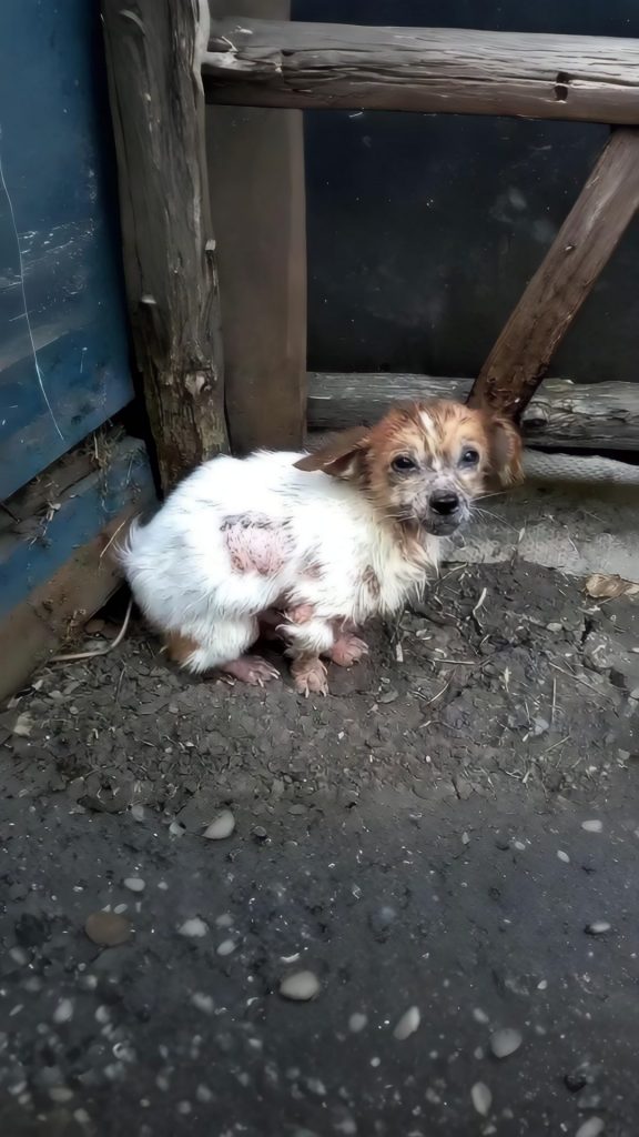 Weighing barely four kilograms, his small body seemed almost unfinished—too light, too tired, too worn for a puppy his age. But what spoke louder than his size was the way he stood. His posture carried the quiet weight of prolonged suffering, as if life had asked too much of him far too early.