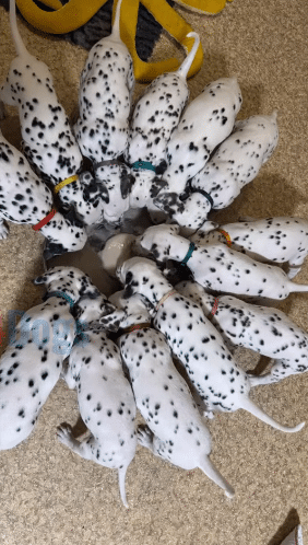 Thirteen tiny Dalmatians.